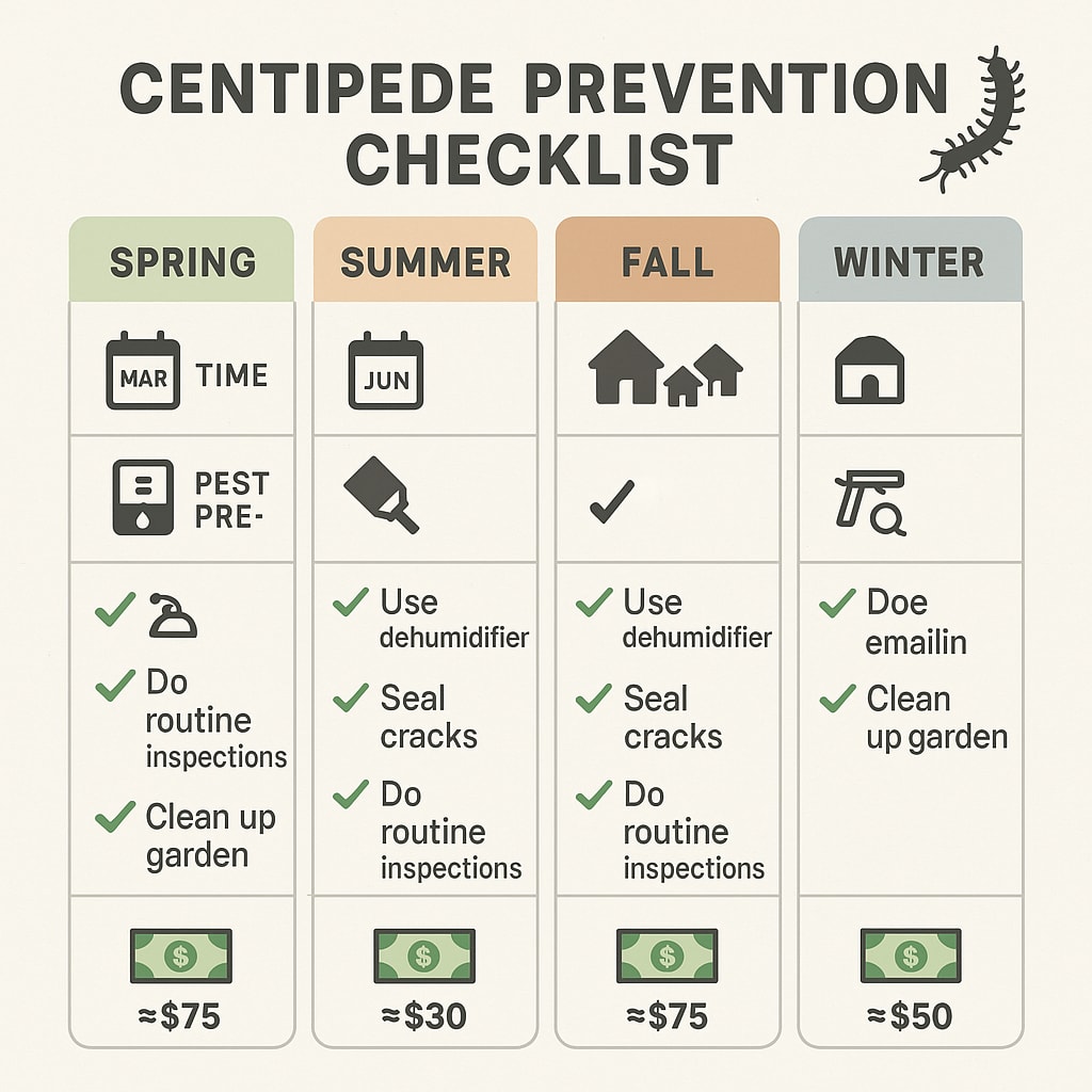 Don’t overlook autumn either. A tune-up in the fall helps seal out centipedes when chilly nights push them to seek warmth inside—usually right under your nose. This gives you extended protection all the way through winter, so you’re not scrambling for emergency help when you’d rather be cozy at home.