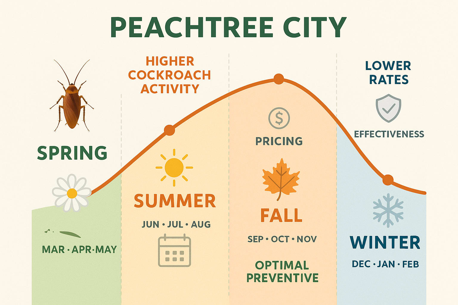 If you’ve noticed more cockroaches scurrying around once the weather heats up, you’re not alone. Here in Peachtree City, cockroach season tends to kick off when the days grow warmer and humidity ramps up—think late spring through early fall. That’s when these pests breed the fastest, and as a result, that’s when you’ll see the highest demand for pest control services.