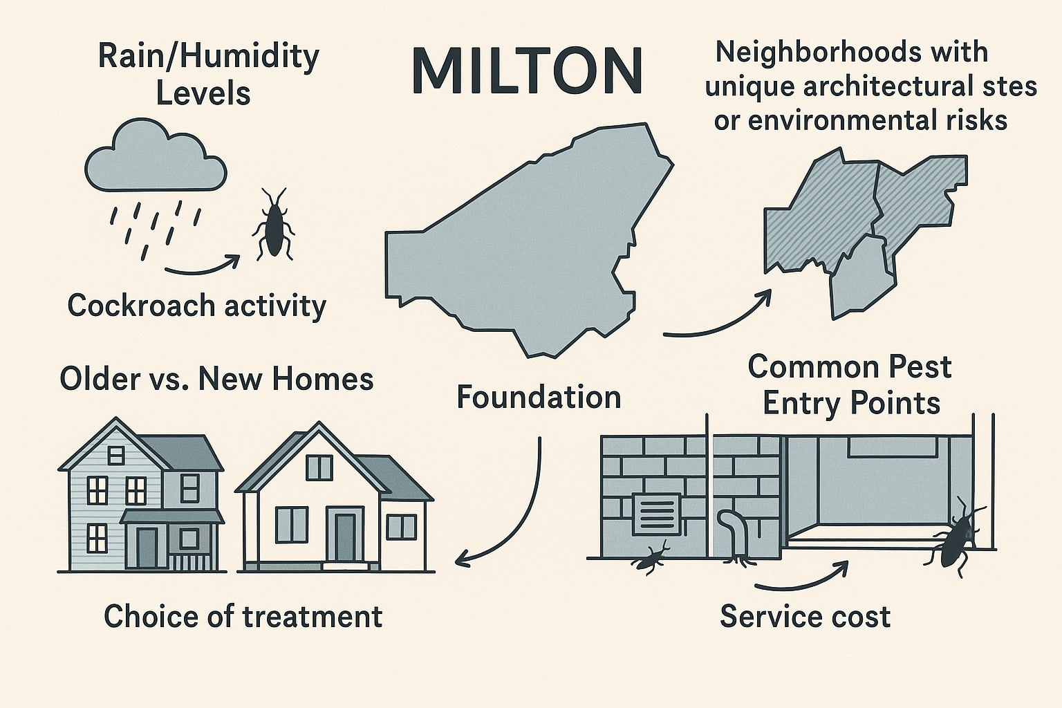 Stay on top of regular inspections, seal up cracks around doors and windows, and get ongoing professional treatments—a must for older homes or neighborhoods with known roach issues. - Which parts of Milton see the most roach problems?