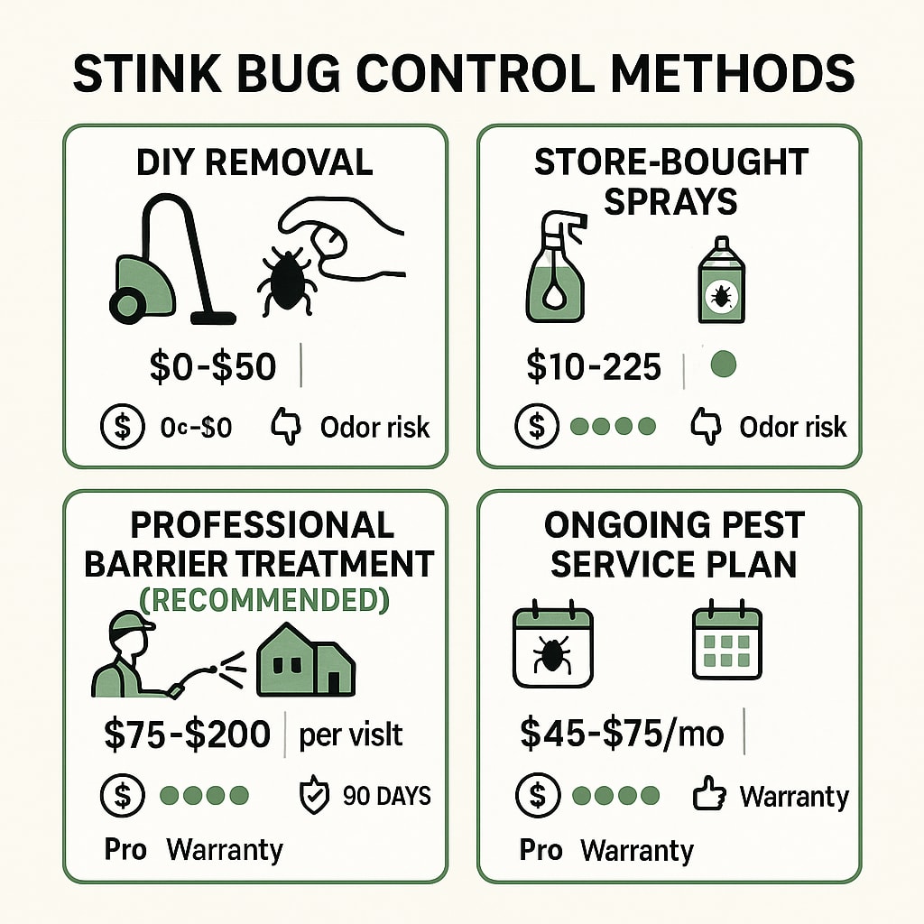 - Quarterly prevention plan: $180–$300 per year (smart option if you want stink bugs off your mind for good)
