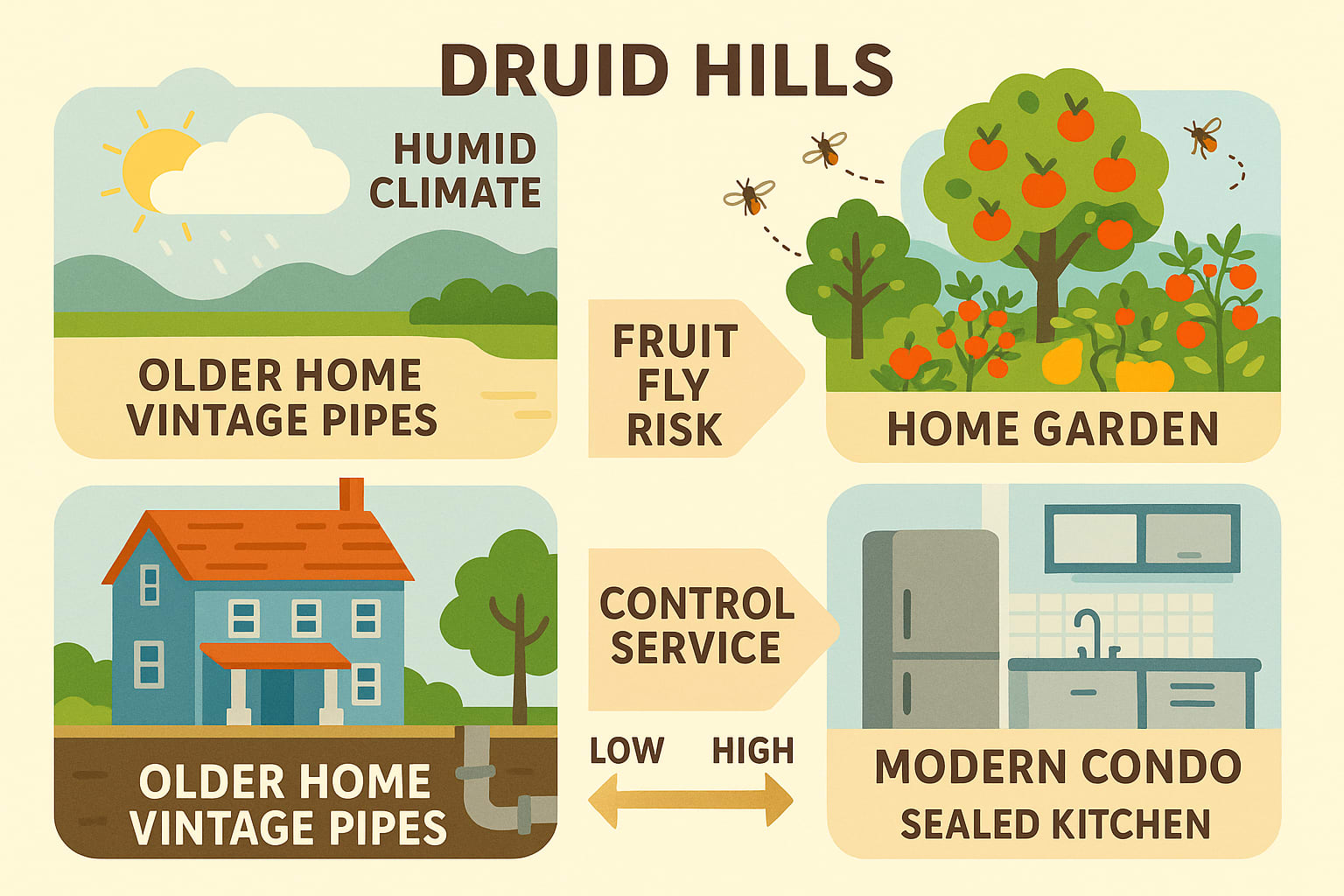 Every Druid Hills home is a little different, and that’s exactly why understanding the neighborhood’s environment and its homes is key to fast, lasting relief from fruit flies.