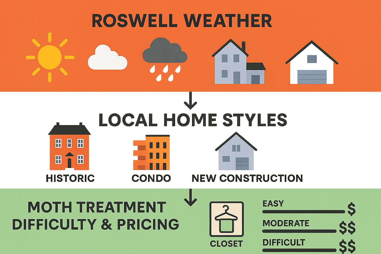 Living in Roswell comes with its own set of quirks. Historic homes near Canton Street, condos off Holcomb Bridge Road, or those charming bungalows with attic crawl spaces each offer different challenges. The layout, age of your property, and even features like walk-in pantries or old hardwood floors might require more effort and time to hit every moth hotspot.