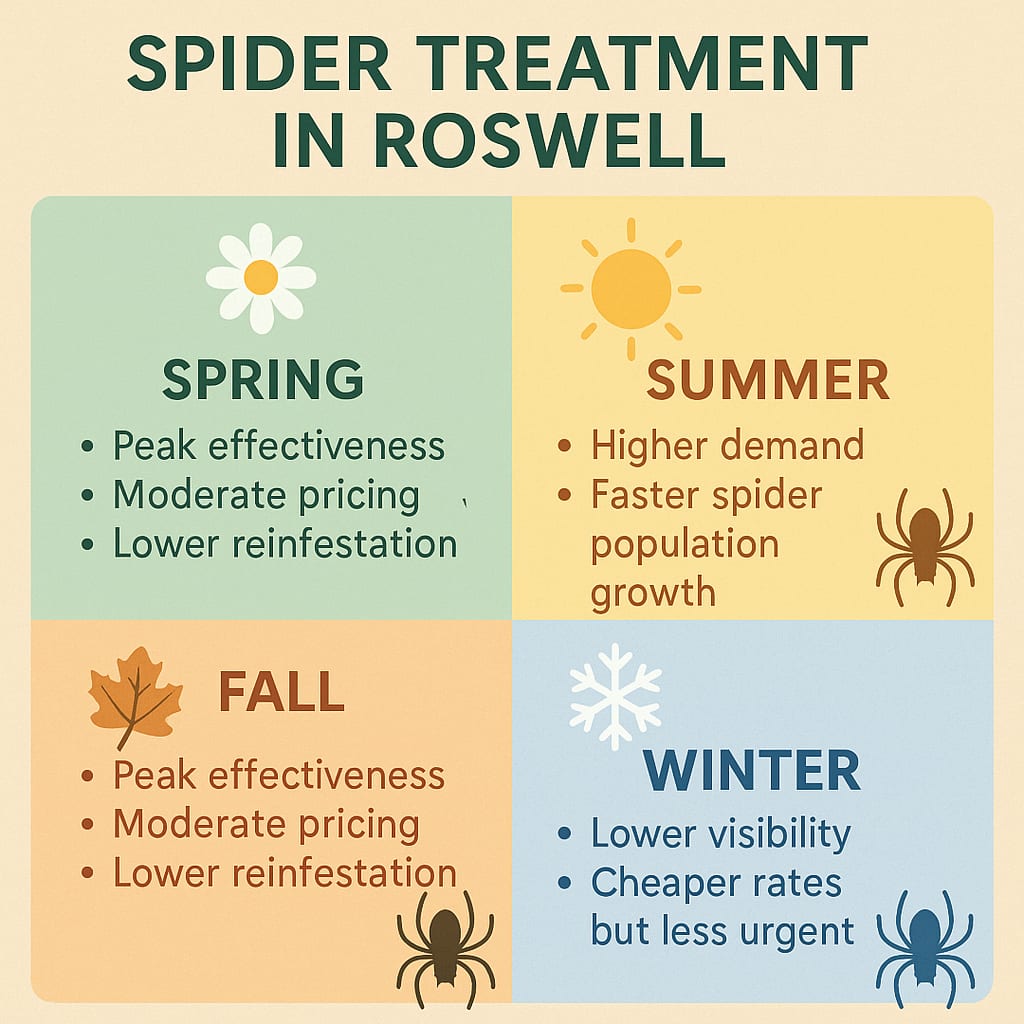 Timing makes all the difference when it comes to getting rid of spiders in Roswell neighborhoods like Horseshoe Bend or Crabapple. If you want the best shot at a spider-free home—and maybe even save some cash—the smart move is to schedule your treatment in early spring or fall. That’s when spiders are just starting to emerge or looking for a spot to stay for the cooler months, so a thorough treatment indoors and out will really pay off. Plus, you’ll beat the seasonal rush and usually lock in more reasonable pricing.