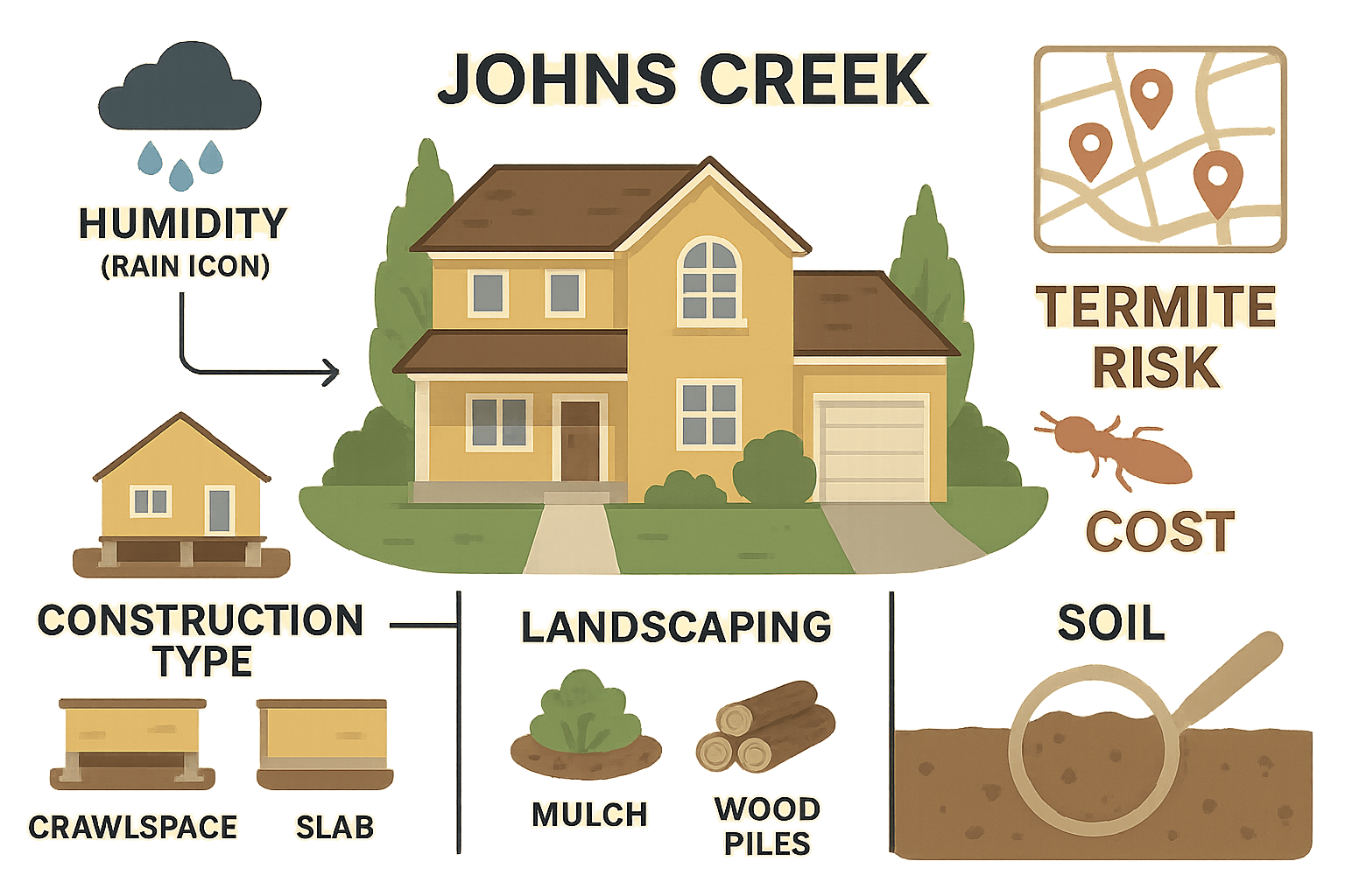 If you own a home in Johns Creek, you already know how much pride goes into caring for your property. But did you know termites may be silently causing damage, hiding right out of sight? Our local climate—humid, with plenty of rainy days—makes the perfect breeding ground for these wood-munching bugs. Whether your house is one of those charming older builds in Newtown, something newer in Medlock Bridge, or somewhere with beautiful landscaping like the Country Club of the South, every Johns Creek home is at risk.