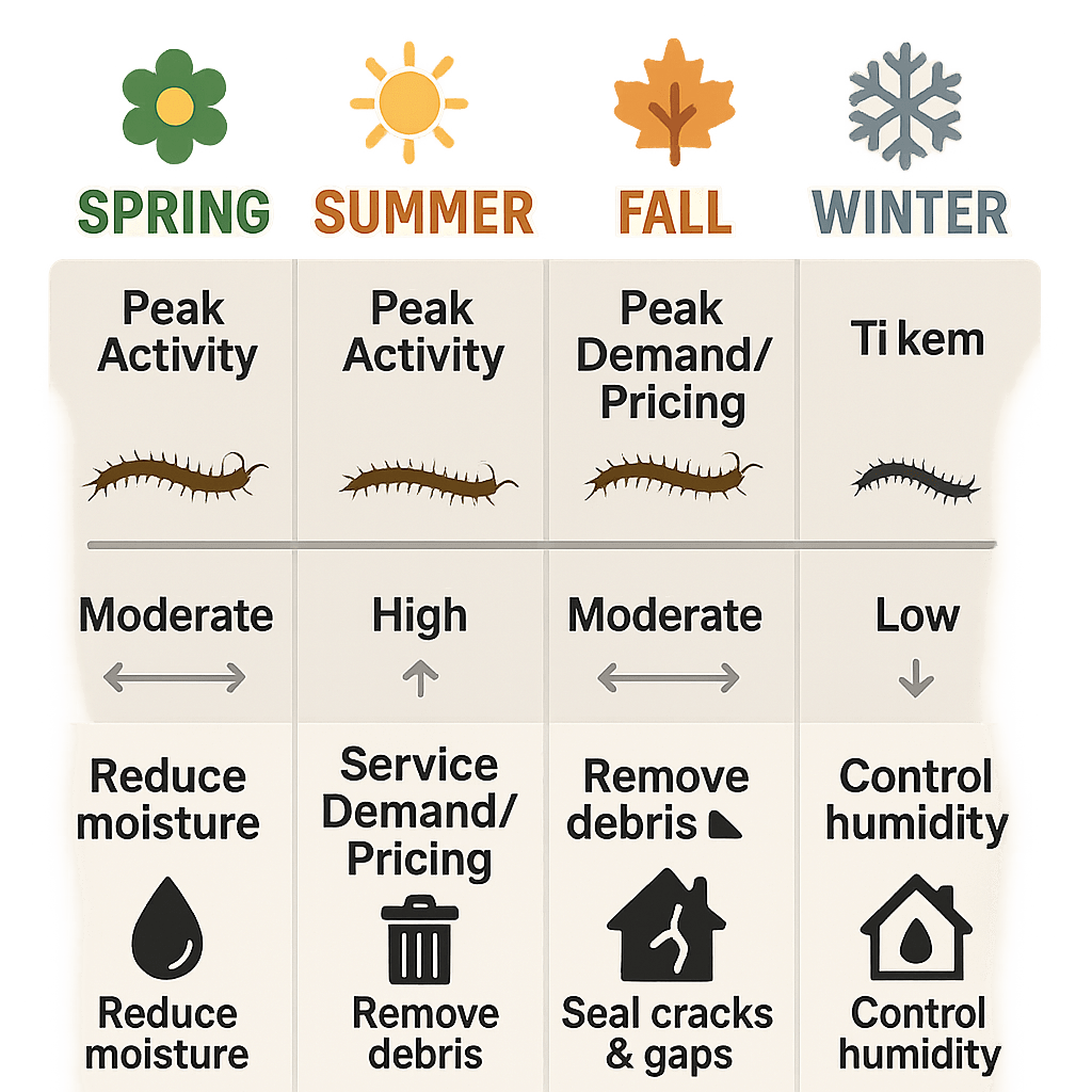 Spring and summer are prime time for centipedes since they love warmth and humidity. If you want to stay ahead, have a pro treat your home early in the season or just before summer really ramps up. But honestly, if you’re spotting centipedes now, effective solutions are available any time of year. - Will centipedes come back after you treat my home?