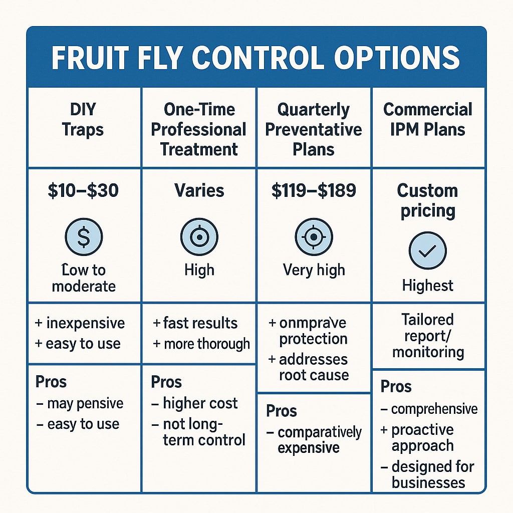 The bottom line: fruit fly control isn’t one-price-fits-all. Your best bet is always to get a local expert out for an assessment—most companies in Peachtree City offer this for free, so you can get a price tailored to your exact situation, no surprises.